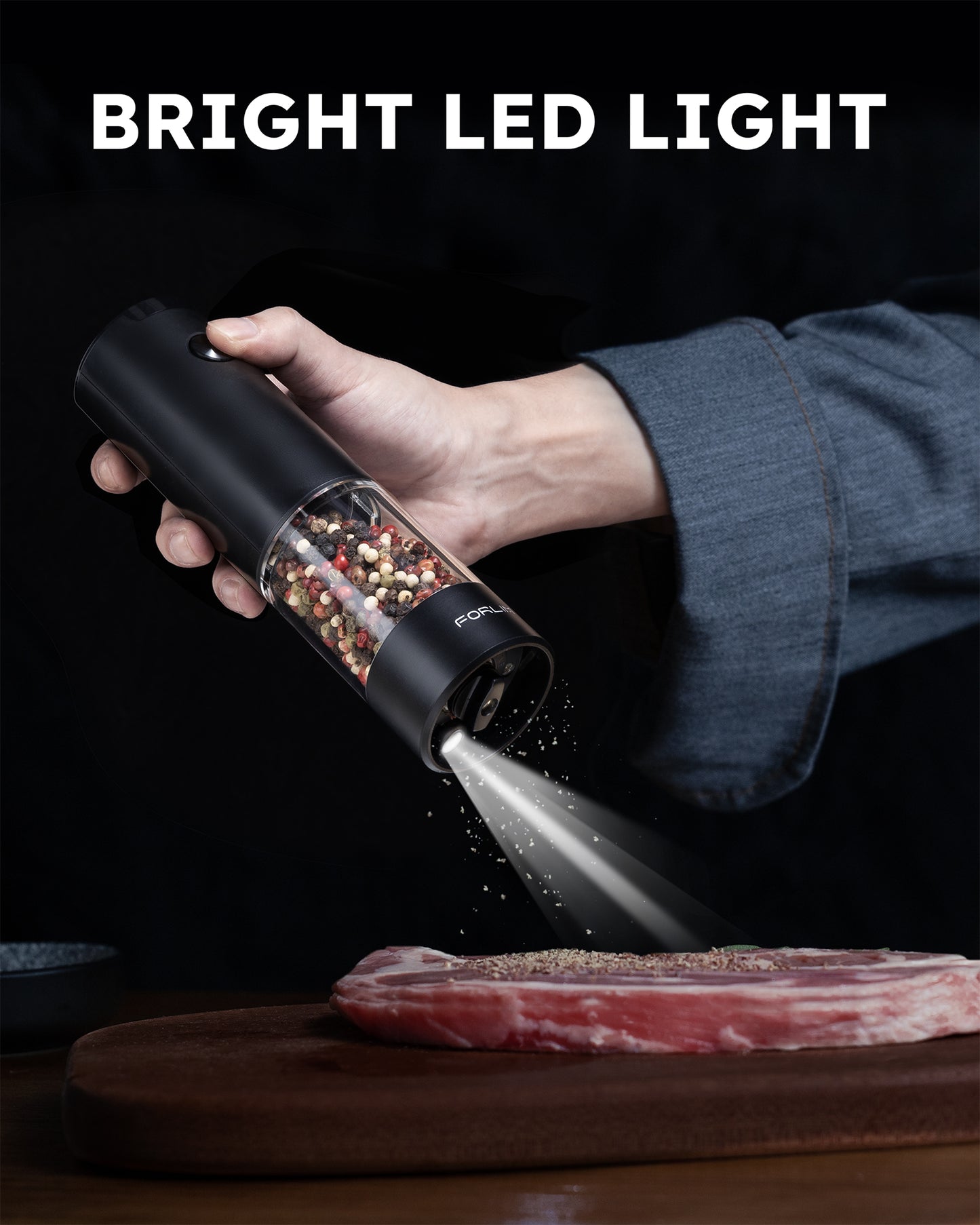 - EXPERTLY DESIGN: Experience the ultimate precision and control with the FORLIM salt and pepper grinder set. Equipped with a handy LED light, you can effortlessly season your dishes to perfection without worrying about overdoing it. High-clarity glass ensures you never miss a refill, making it easy to maintain and use. Elevate your dining experience with this must-have kitchen gadget