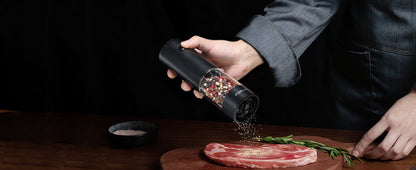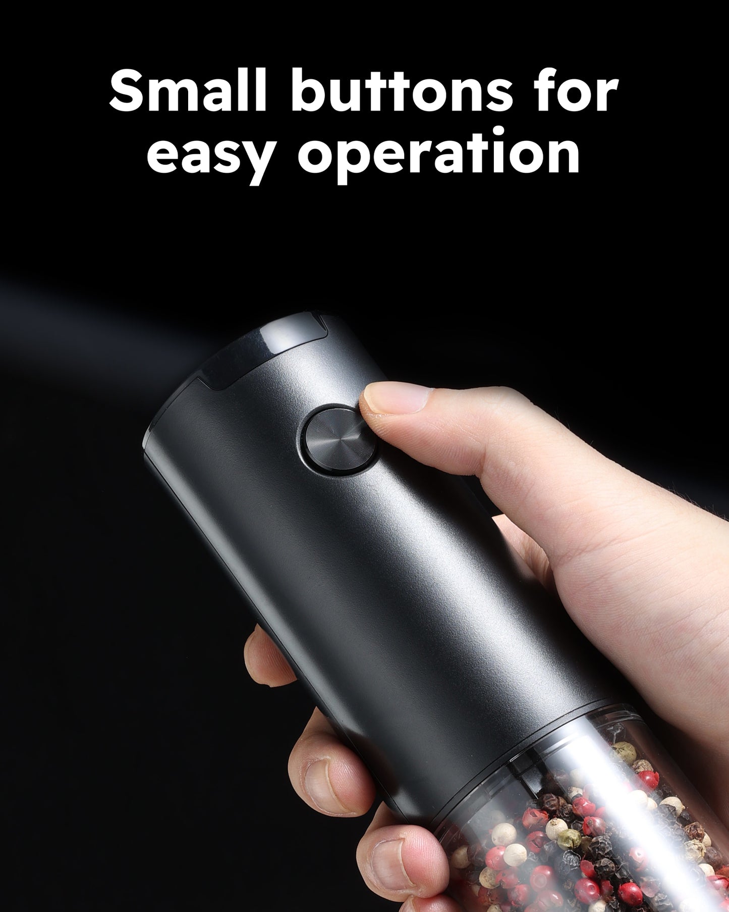 - COMBINING STYLE & FUNCTIONALITY: The upgraded structure cleverly separates the motor and grinder, preventing spice corrosion and extending the motor's lifespan. The premium matte black design not only adds a touch of modern elegance to your kitchen but also preserves the rich aroma of your favorite spices. Only requiring 4 AAA batteries (not included), it significantly reduces wrist pressure