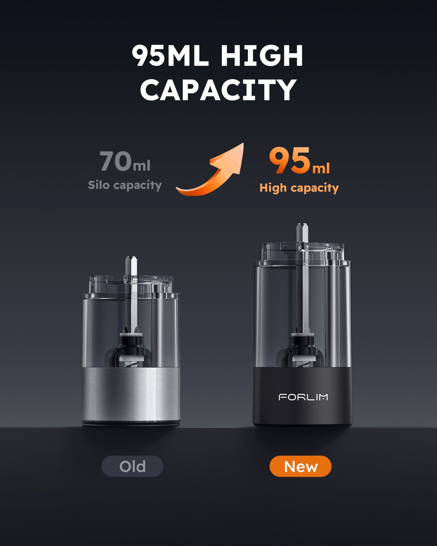 FORLIM Electric Salt and Pepper Grinder Set, Upgraded Washable 95 ml Capacity, 4AAA Batteries Powered, One Handed Operation Automatic Mill with LED, Refillable Adjustable Coarseness(Black)