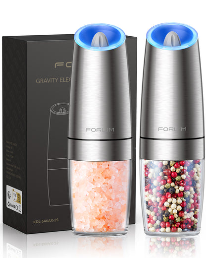 FORLIM Electric Salt and Pepper Grinder, Upgraded 4 Batteries, Automatic Pepper Grinder with LED Light, Adjustable Coarseness One Hand Operation, Stainless Steel, 1Pack(Sliver)