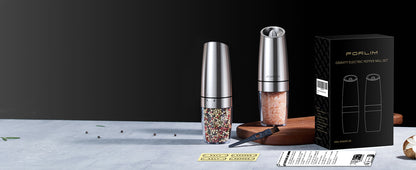 - AUTOMATIC OPERATION: Our innovative gravity sensor technology makes grinding a breeze. This battery-operated salt and pepper grinder set starts when tilted and stops when upright, providing a convenient and user-friendly experience. Say goodbye to manual grinding or messiness, and enjoy smooth and precise seasoning every time.